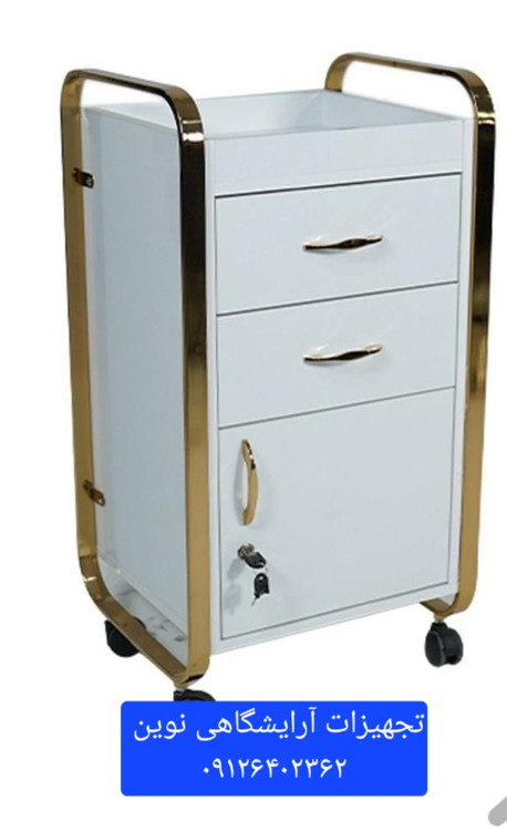 ترولی آرایشگاهی چوبی دوکشو یه درقفلدار