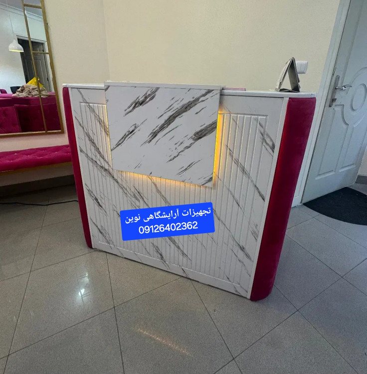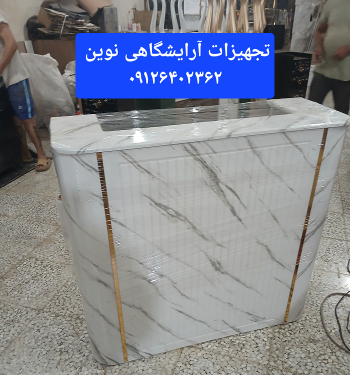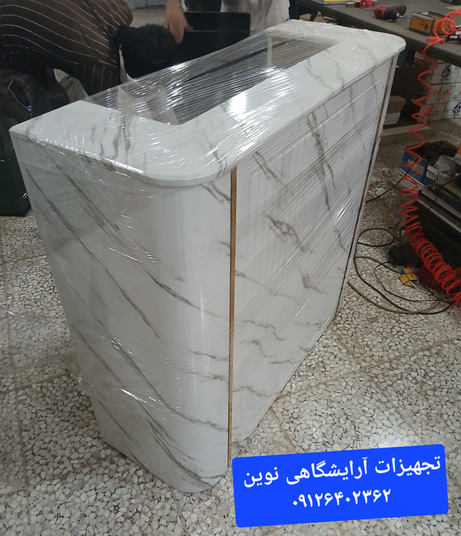 کانتر آرایشگاهی نوردار دردومدل چوب سفیدومشکی ساده وطرح سنگ