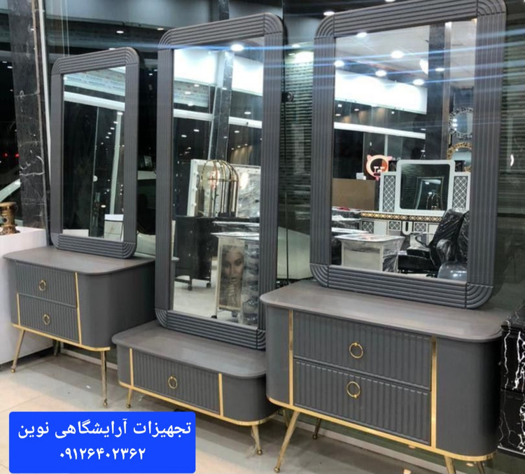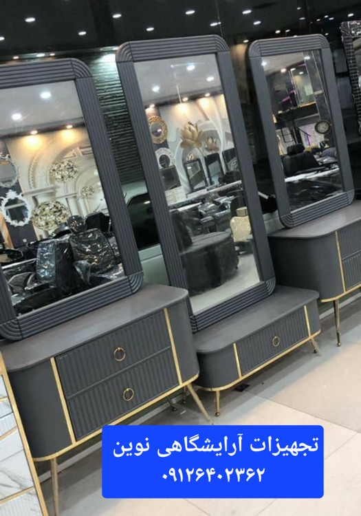 دکور آرایشگاهی سه تیکه بغل خم دررنگ بندی سفیدومشکی طوسی