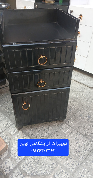ترولی چوبی آرایشگاهی وکیوم دررنگ بندی سفیدومشکی ساده و رگه دار