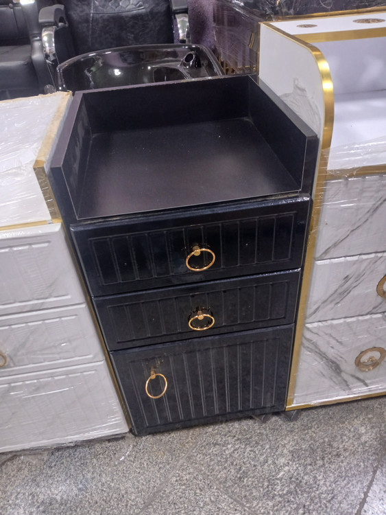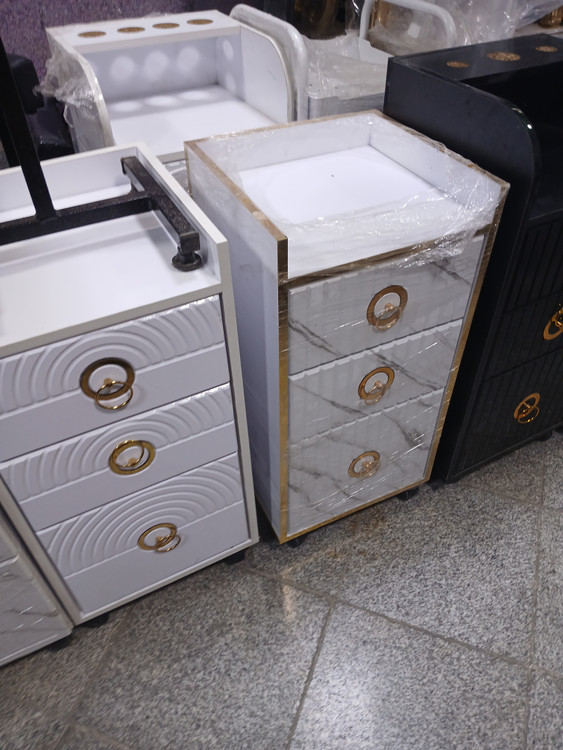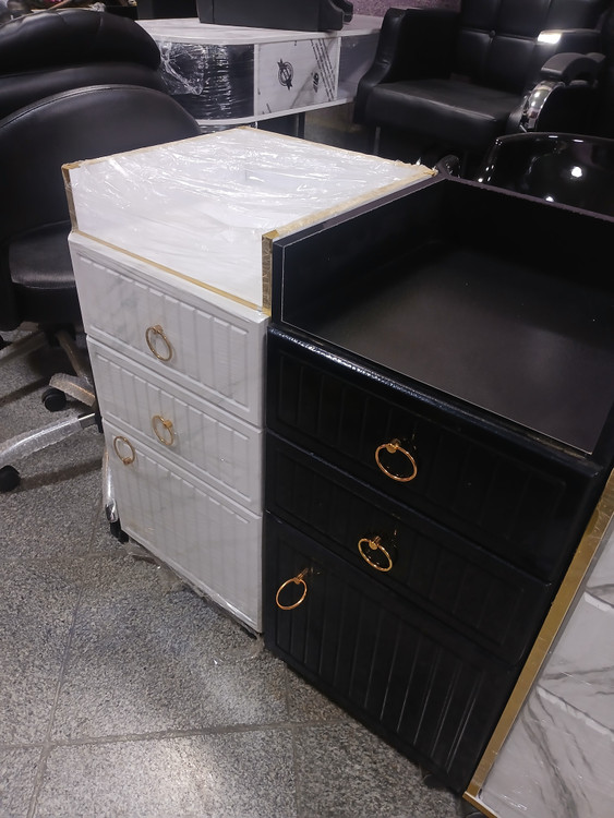 ترولی آرایشگاهی چوبی وکیوم دررنگ بندی سفیدومشکی ساده وطرح سنگ