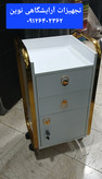 ترولی آرایشگاهی چوبی شیک بغل فلزی دررنگ بندی سفیدومشکی