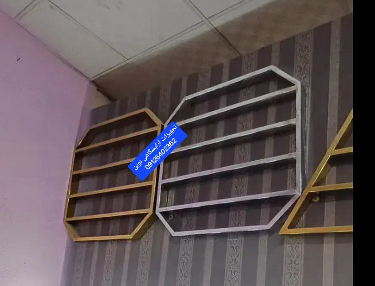 استند لاک دیواری شش ضلعی فلزی دررنگ بندی طلایی ونقره ای مشکی