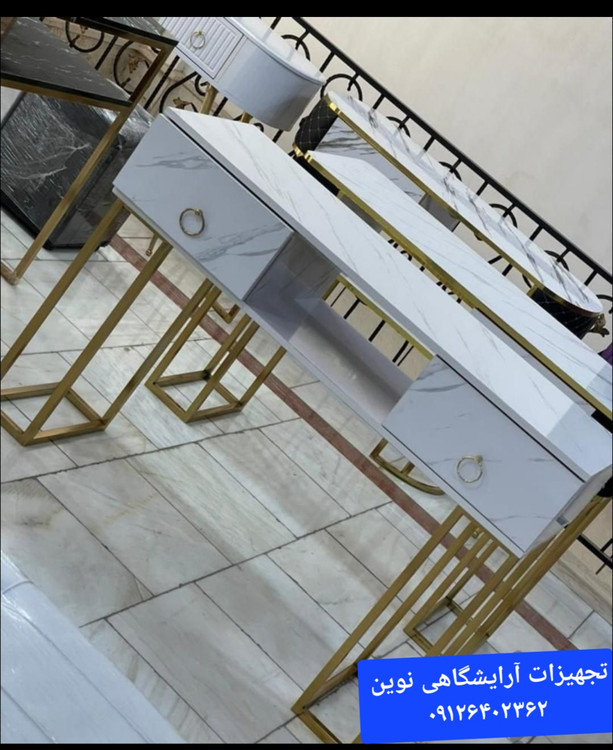 میزناخن آرایشگاهی چوبی پایه فلزی تک نفره دوکشو