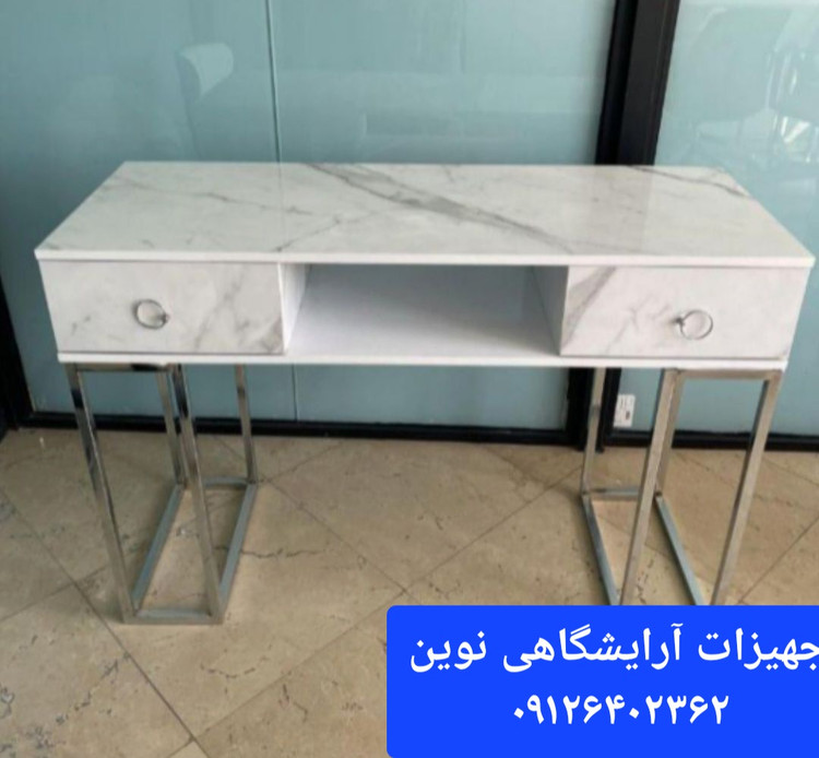میزناخن آرایشگاهی چوبی پایه فلزی تک نفره دوکشو