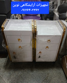ترولی آرایشگاهی چوبی شیک بغل فلزی دررنگ بندی سفیدومشکی کپی