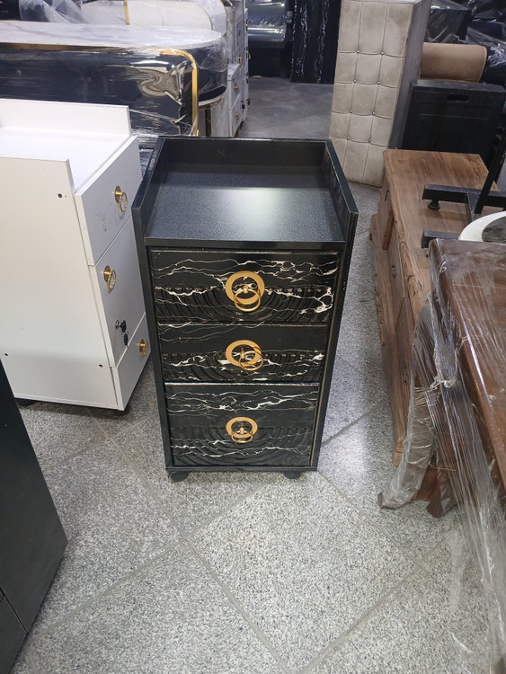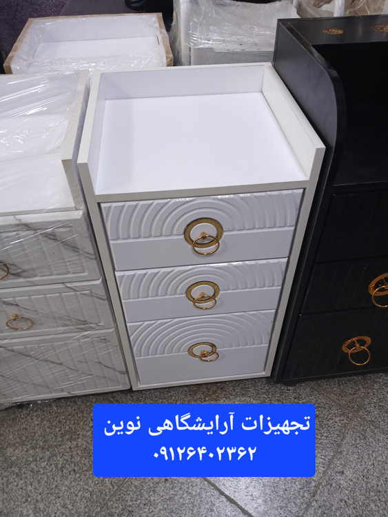 ترولی آرایشگاهی چوبی وکیوم دررنگ بندی سفیدومشکی ساده وطرح سنگ