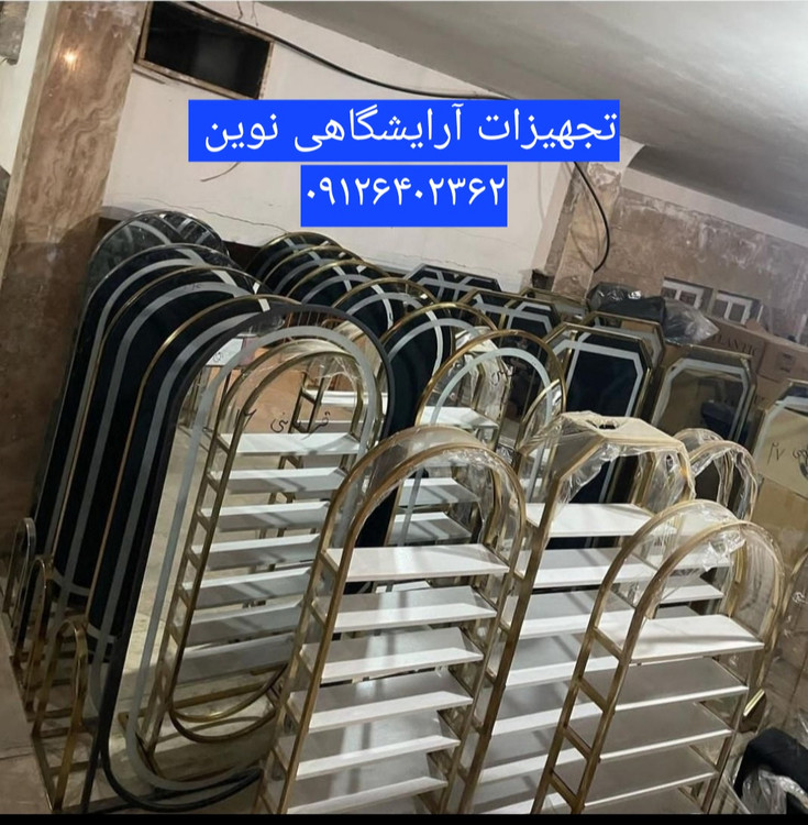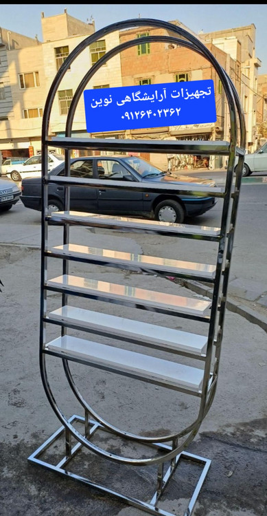 استند ایستاده آرایشگاهی فلزی دررنگ بندی فلز طلایی ونقره ای کپی