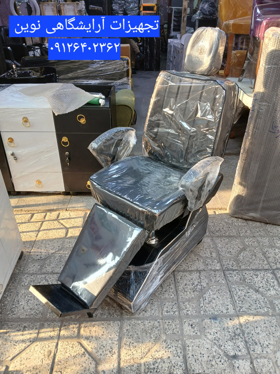 صندلی آرایشگاهی مدل مردانه طرح برقی چرم مشکی.
