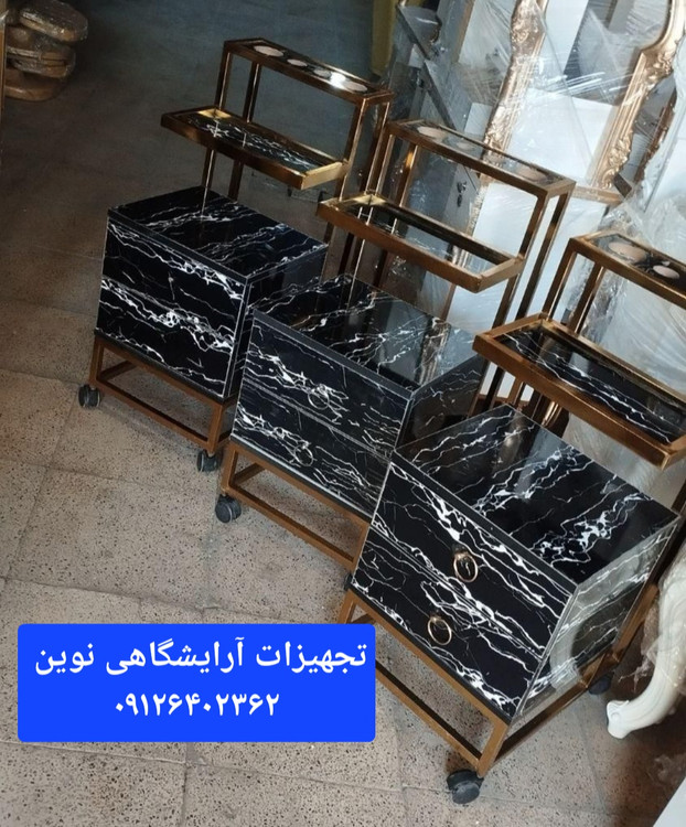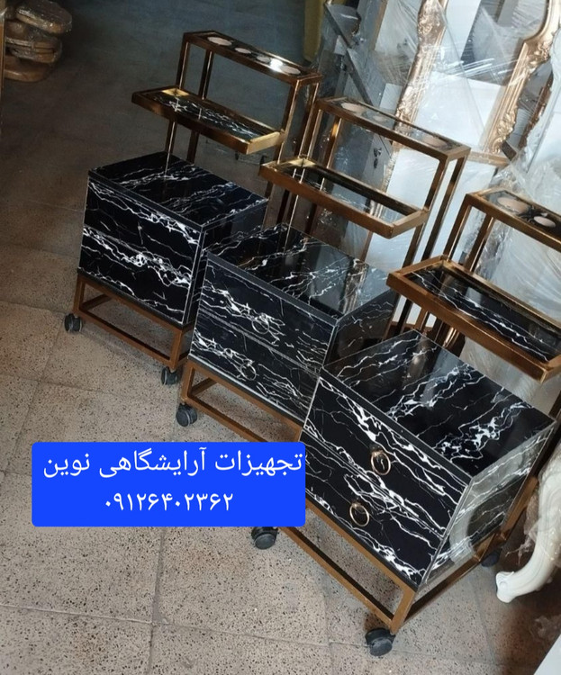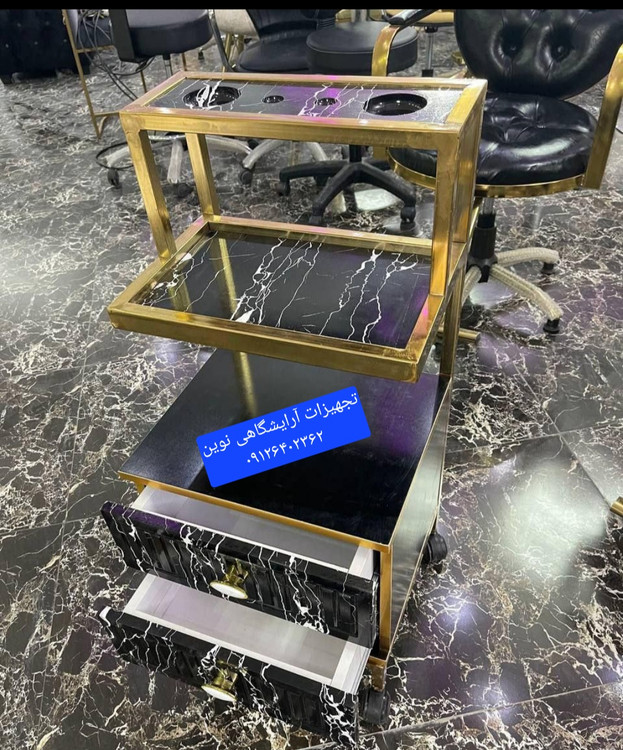 ترولی آرایشگاهی دسته عصایی بدنه فلز دررنگ بندی متنوع