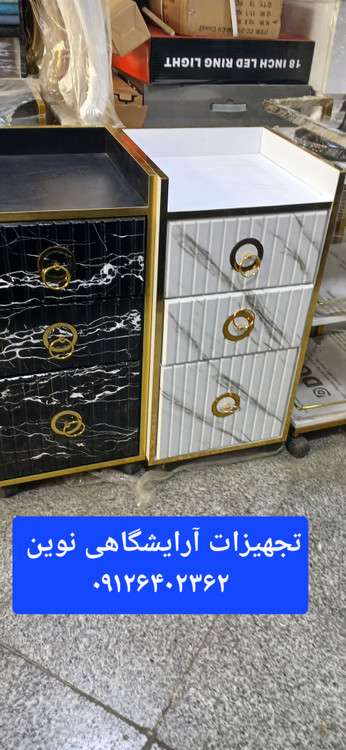 ترولی آرایشگاهی نوار طلایی وکیوم دررنگ بندی سفیدومشکی