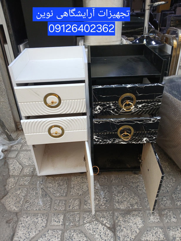 ترولی آرایشگاهی چوبی وکیوم نوارطلایی