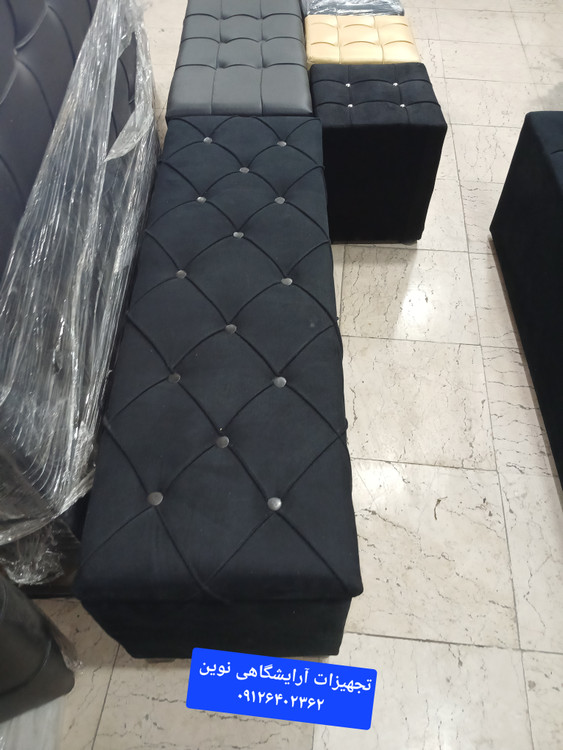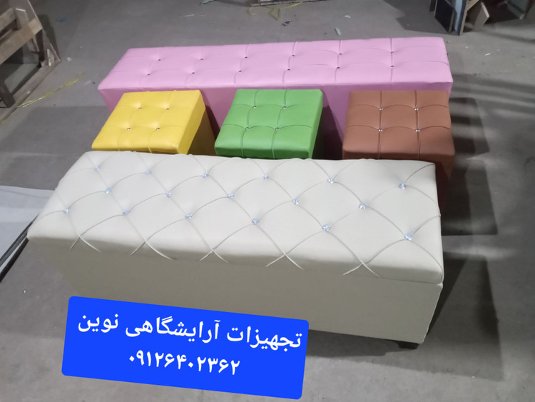 پاف سه نفره باکسدار دررنگ بندی متنوع پارچه وچرم